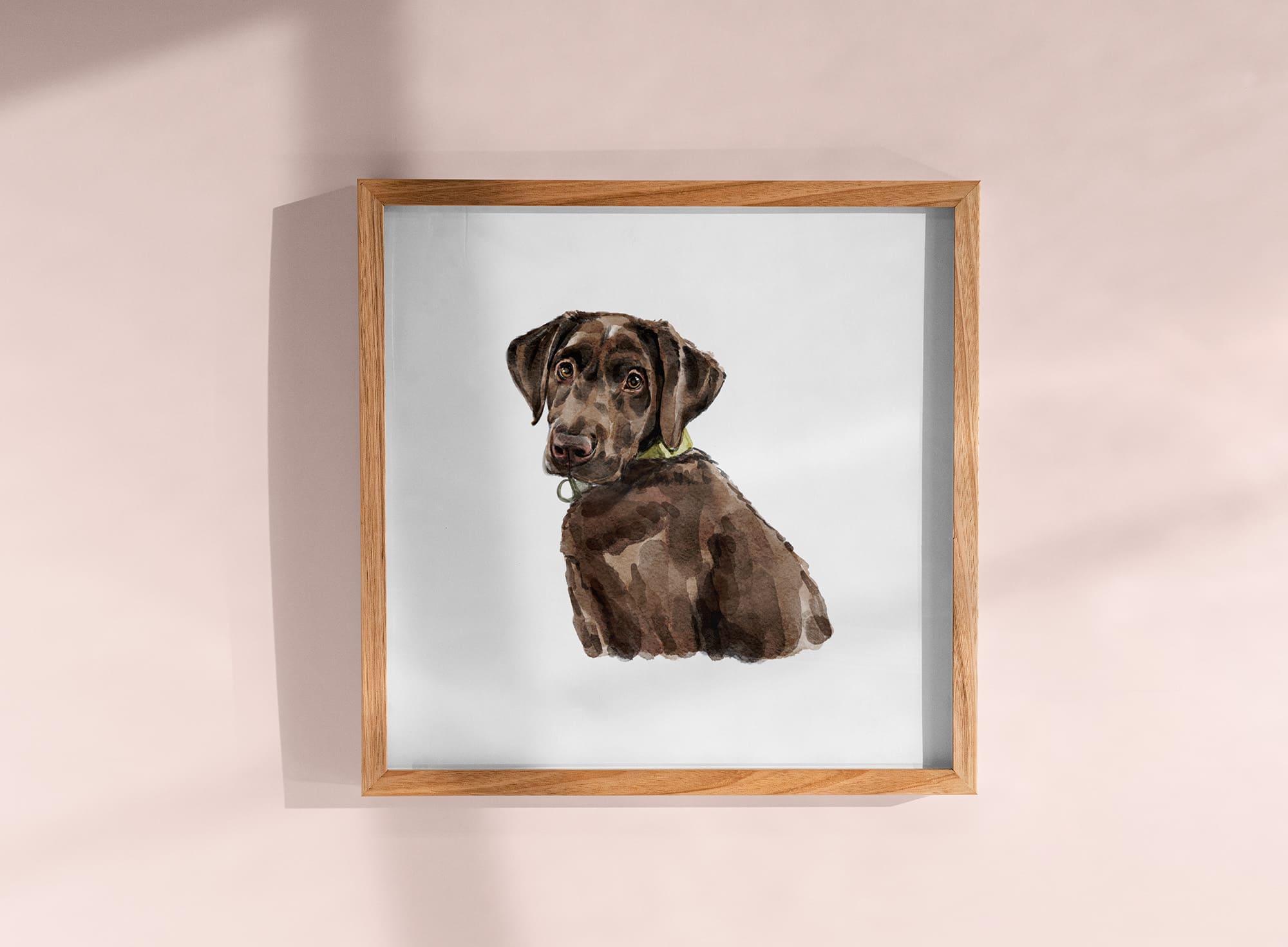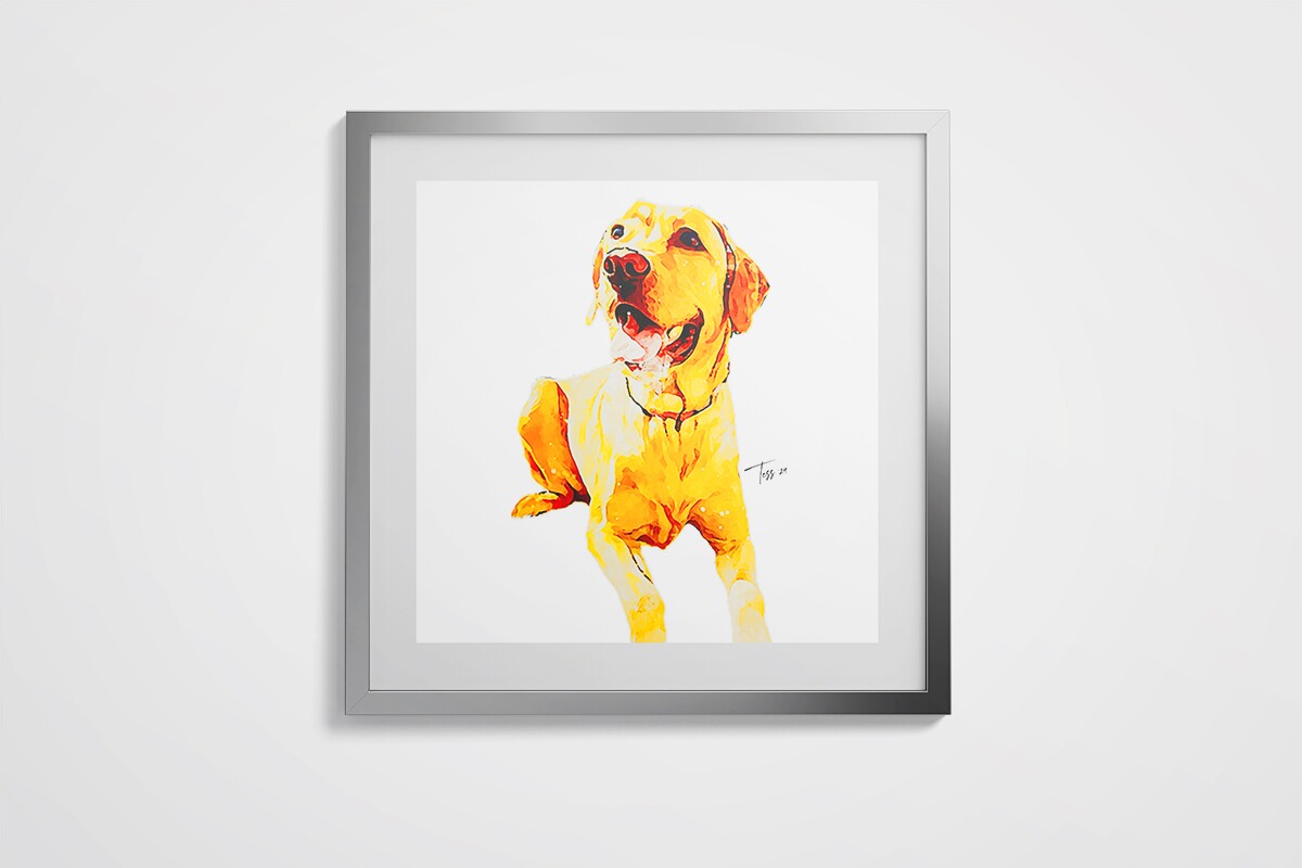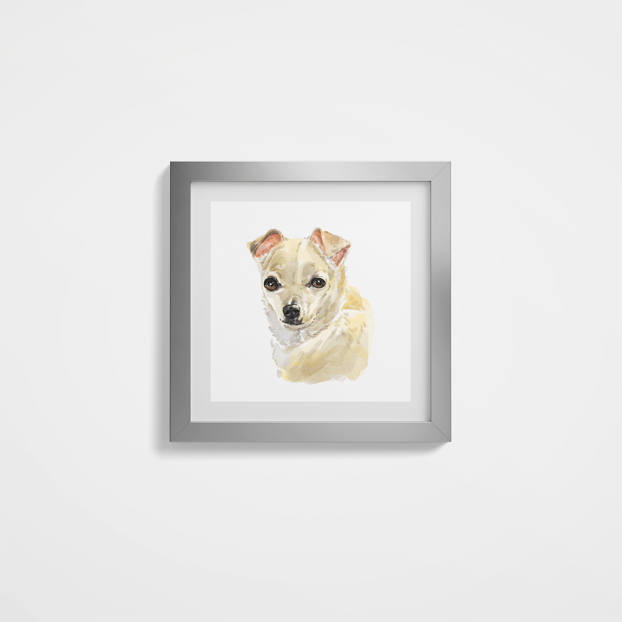 10″ × 10″ – $180 — Portrait of 1 pet on white or minimal background, same high-quality paper.