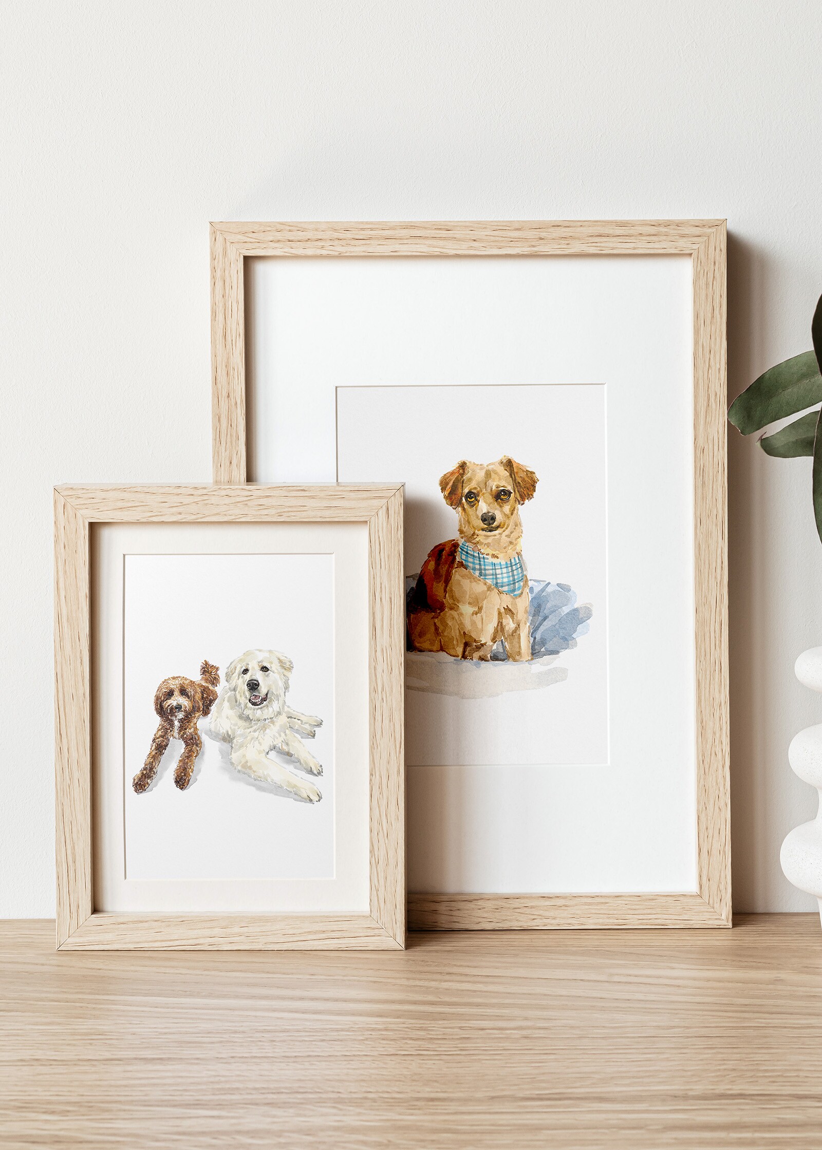 12″ × 12″ – $240 — Portrait of 1–2 pets on white or minimal background.